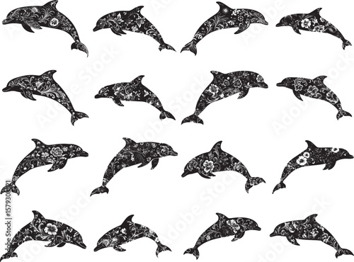 © SonatanChandra, Naklejka premium Floral Dolphin Stencil