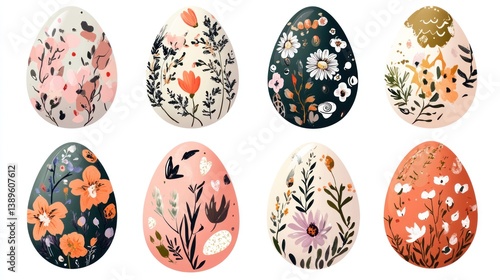 Fototapeta premium Floral Easter Eggs Decorated