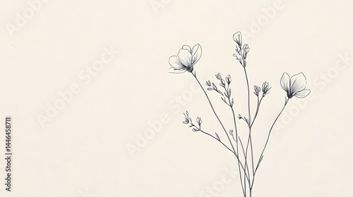 © GROW HIGH, Naklejka premium Floral elegance: A delicate pen and ink illustration of blooming flowers. The illustration captures the grace and beauty of nature.