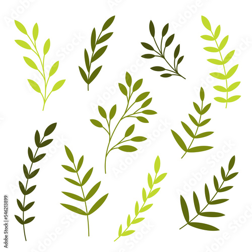 © Yulia, Naklejka premium Floral elements. Set of different branches, leaves. Botanical vector illustration.