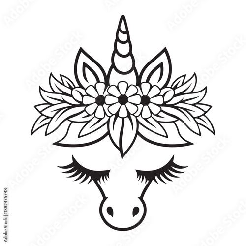 Obraz premium Floral Fantasy Dreamy Unicorn Silhouette