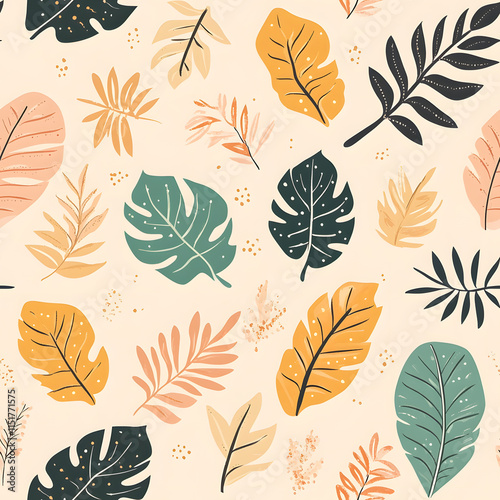 Fototapeta premium floral flower and leaf elements modern doodle illustrator seamless pattern...