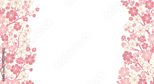 © Vektor, Fototapeta premium Floral Frame: Delicate Pink Blossoms Bordering White Space.