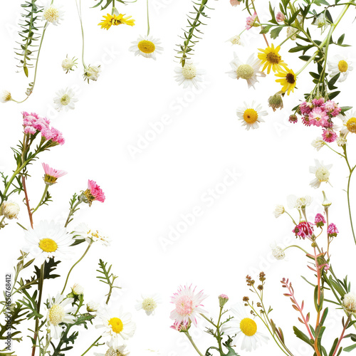 © Taff, Obraz premium Floral frame of various daisies and wildflowers
