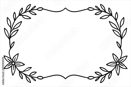 © SKShagor, Obraz premium Floral Frame with Pink Lily and Leaf Ornament in Vintage Spring Design