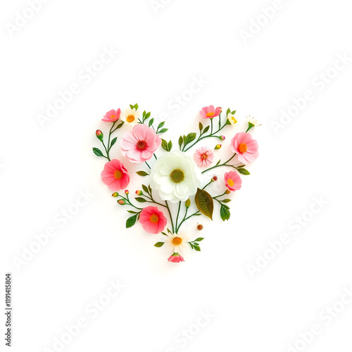 © Светлана Громак, Obraz premium Floral heart with leaves and herbs.Floral background.A bouquet for Valentine's Day.The 14th of February