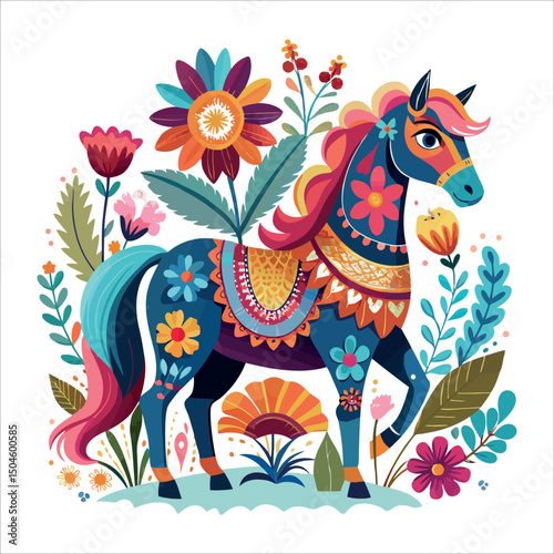 Obraz premium Floral horse vector art illustration with abstract ornate animal design elements