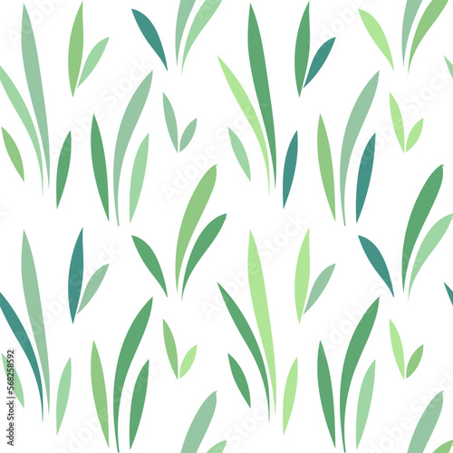 © Good Goods, Naklejka premium Floral leaf seamless pattern. Spring grass leaves vector background, flower herb textile print, bamboo grass brunches