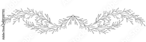 Fototapeta premium floral leaves line art isolated on white background. Divider doodle leaf and...