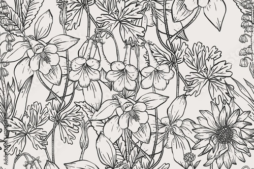© Rawpixel.com, Fototapeta premium Floral line art social media banner, black and white hand drawn design