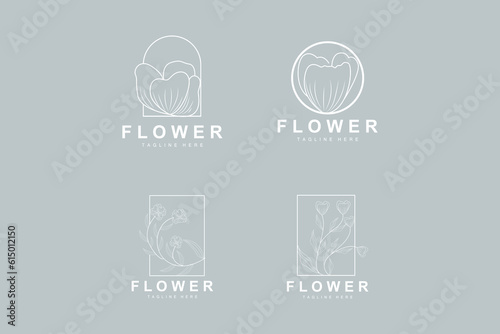 Obraz premium Floral Logo, Leaves And Flowers Botanical Garden Vector, Floral Design Of Life