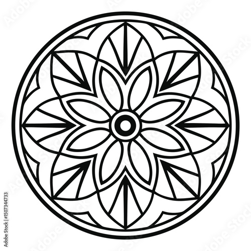 Fototapeta premium Floral Mandala Design: Simple, Circular, Black and White Graphic Element in Isolatation for Coloring Book Page and Creative Design