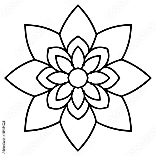 Fototapeta premium Floral mandala outline vector, a modern mandala icon art design, black vector of a floral mandala, simple floral mandala art, a mandala isolated