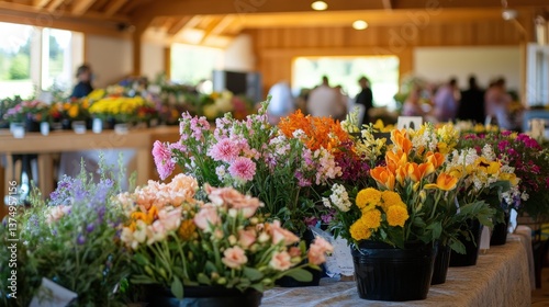 Fototapeta premium Floral Market's Embrace: A vibrant floral market unfolds, with an array of...