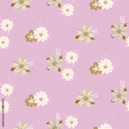 © YoPixArt, Obraz premium Floral pattern background with meadow flowers. Sage green backdrop and cream daisy bunches.