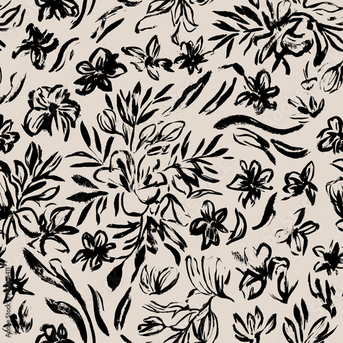 Obraz premium Floral pattern, monochrome flowers pattern, textile print.