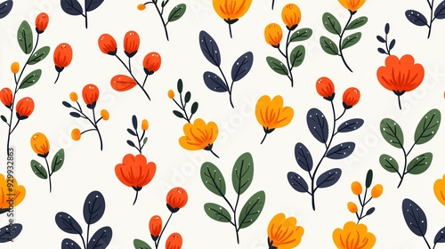 Fototapeta premium Floral Pattern with Orange, Yellow, and Green Flowers
