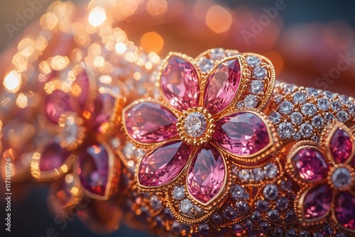 Fototapeta premium Floral pink gemstone bracelet with diamond accents