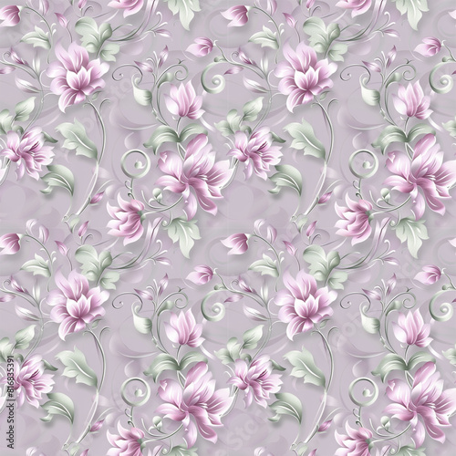 © mouse, Obraz premium Floral purple color, form natural, seamless fabric pattern.