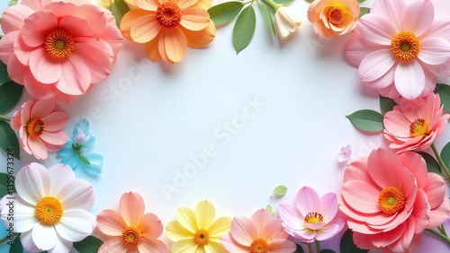 Fototapeta premium Floral rainbow frame for LGBTQ+ events. Pastel gradients and natural...