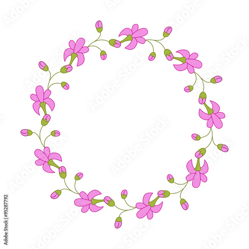 Fototapeta premium Floral romantic round frame. Wreath with hand drawn doodle flower. Design for...