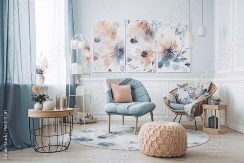 © AkuAku, Obraz premium Floral room decor. Generative AI