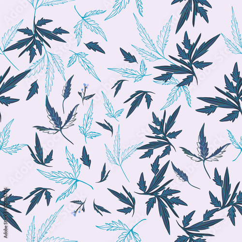 © Mary fleur, Naklejka premium Floral rustic vector pattern with leaves and plants in blue color
