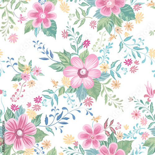 Obraz premium Floral seamless pattern. Abstract ornamental flowers. Flourish spring decor