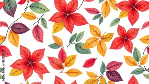 Obraz premium Floral seamless pattern, colorful leaves, vector design