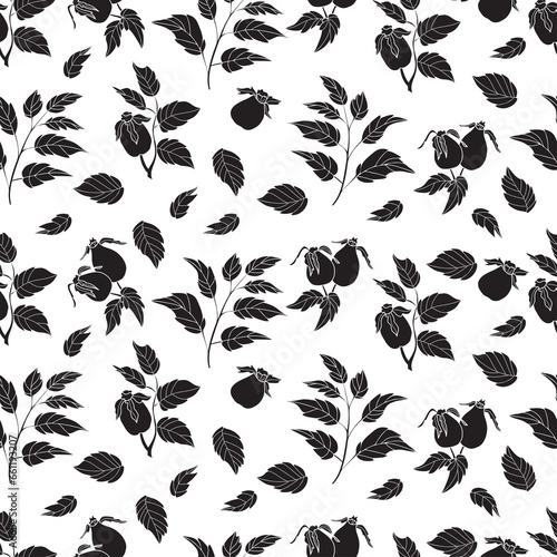 © Ludmila, Fototapeta premium Floral seamless pattern. Rosehip