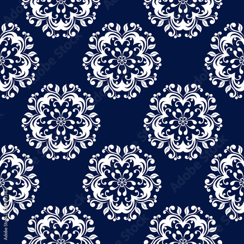 Fototapeta premium Floral seamless pattern. White flowers on dark blue background