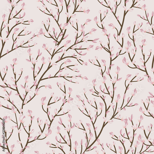 Obraz premium Floral seamless pattern with soft pink flowers on background. illustration...