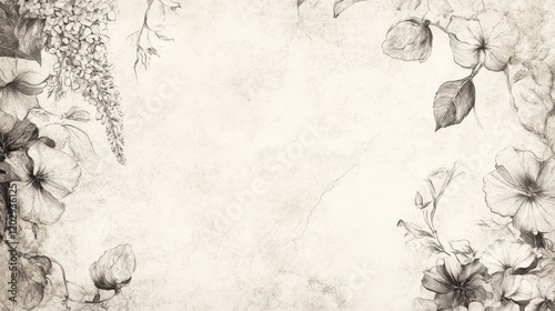 © Feri, Fototapeta premium Floral Sketch Border on Textured Background