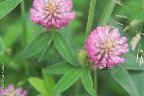 Fototapeta premium Floral summer background, soft focus. Blooming clover. Blurred background.