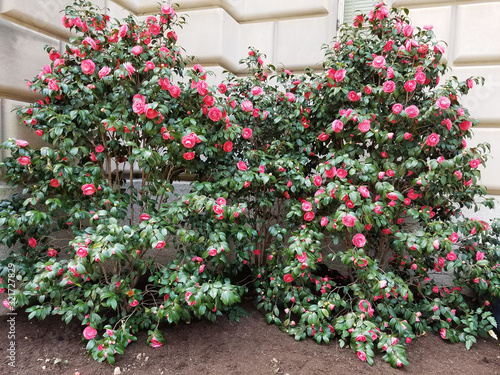 © 3000ad, Naklejka premium Floral texture with red flowers and green foliage