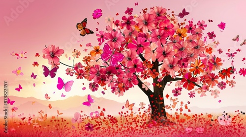 © CREATIVE STOCK, Fototapeta premium Floral tree beautiful with butterfly
