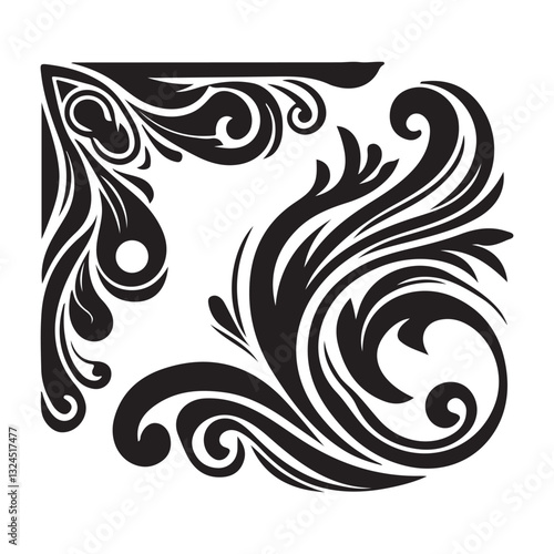 Fototapeta premium Floral vector design features an abstract swirl ornament with ornate leaf and...