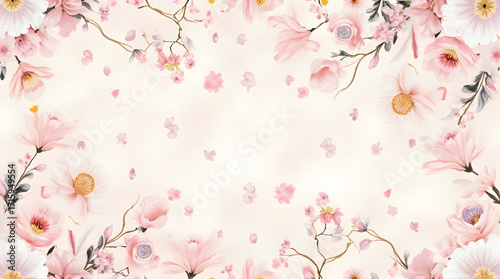 Fototapeta premium Floral Watercolor Background with Pink Blossoms and Petals