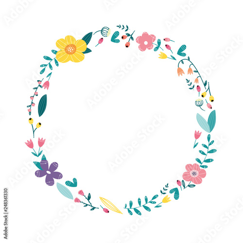 Obraz premium Floral wreath design with fresh flowers. Vector illustration..
