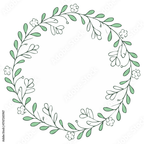 Fototapeta premium Floral wreath illustration with green leaves and delicate flowers