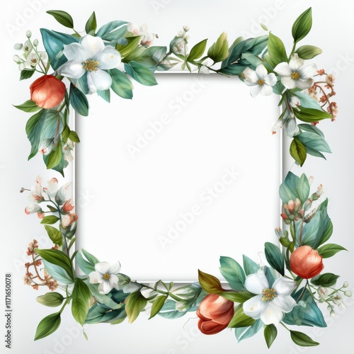 Fototapeta premium Floral wreath with bunny, blooms, and greenery suitable for spring or Easter celebration