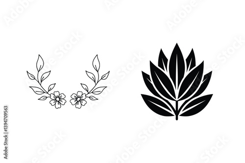 Fototapeta premium Floral Wreath With Flowers And Leafy Foliage In Minimalist Black And White Design