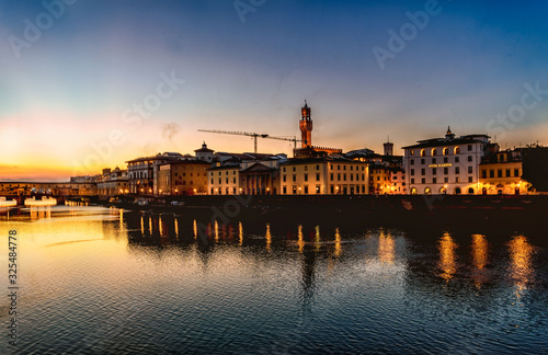 © Tasawer, Fototapeta premium Florence by the Golden Hour, Water Reflection