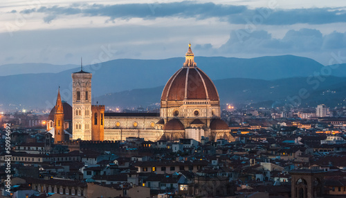 © Marco Saracco, Obraz premium Florence, Cathedral, night panorama