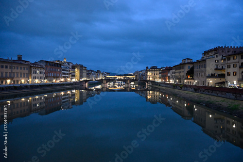 © glashaut, Naklejka premium Florence city views. Marble Dome, Details of Statues and Buildings. Arno River. Ponte Vecchio.