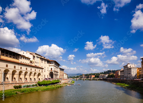 Naklejka premium Florence cityscape with Arno River embankment Vasari Corridor and Uffizi Gallery Tuscany Italy
