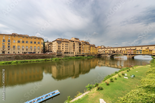 Obraz premium Florence downtown, the River Arno and the famous Ponte Vecchio (Old Bridge),...