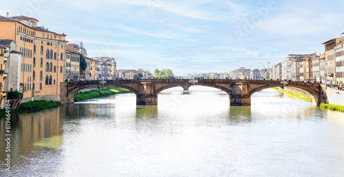 Obraz premium Florence, Italy - April 10, 2024: View of the Santa Trinita Bridge in...