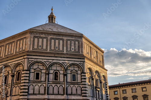 © Torval Mork, Fototapeta premium Florence, Italy - July 12, 2022: Architectural details of the Cathedral of Santa Maria del Fiore, Giotto's Tower and St. John's Bapistry in Florence