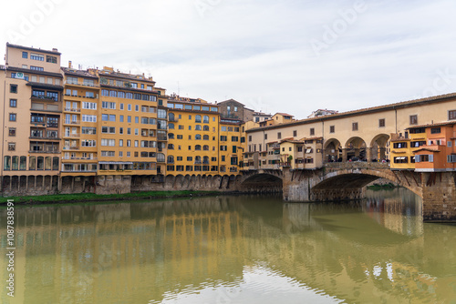 © ShapikMedia, Naklejka premium Florence, Italy - November 5, 2024: Florence cityscape and The Ponte Vecchio (Old Bridge).